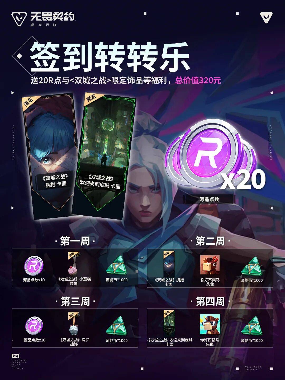另外,3月6日起开启的“签到转转乐”活动也还在进行中,登录即可免费领取20R点及「双城之战」限定卡面、挂饰等道具,免费福利总价值达320元!
