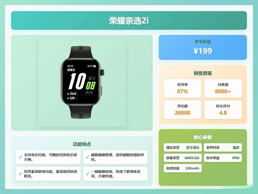 荣耀亲选品牌专注于为消费者提供兼具时尚与实用性的智能穿戴设备。其产品设计注重用户体验,结合先进科技和贴心功能,打造符合现代生活需求的智能手表。
