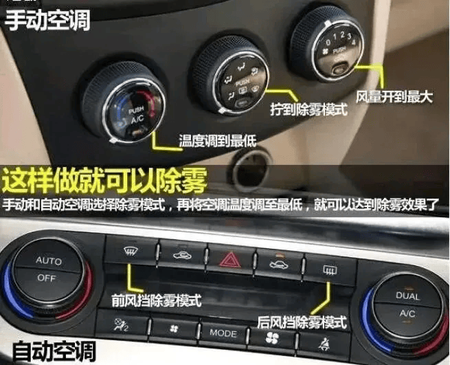 2. 保持良好视线。出门前检查车辆雨刮器,确保正常工作、能有效刮除雨水;行车途中车窗起雾,可将出风方式调成除雾模式,开启暖风,驱散雾气。需要注意的是,暖风除雾初期雾气会更浓,要选择安全地点停车后除雾,待视线清楚后再上路行驶,切忌边开车边除雾的情况。