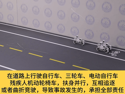 【法律依据】:《中华人民共和国道路交通安全法实施条例》第七十二条:在道路上驾驶自行车、三轮车、电动自行车、残疾人机动轮椅车应当遵守下列规定:(六)不得扶身并行、互相追逐或者曲折竞驶。