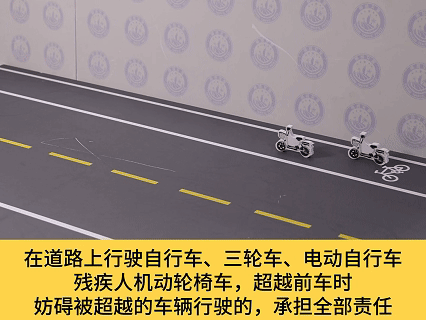 【法律依据】:《中华人民共和国道路交通安全法实施条例》第七十二条:在道路上驾驶自行车、三轮车、电动自行车、残疾人机动轮椅车应当遵守下列规定:(四)转弯前应当减速慢行,伸手示意,不得突然猛拐,超越前车时不得妨碍被超越的车辆行驶。