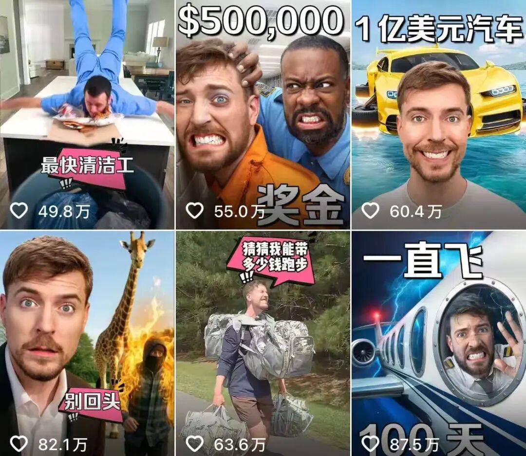 混子哥之后,还有两个账号的增粉量在300W-500W之间,分别是以各种脑洞大开的挑战在YouTube上狂揽了4亿粉丝的“全球第一网红”@Mrbeast,以及明星账号@赵露思。余下账号中,有4个账号的增粉量在200W-300W之间,其他13个账号的增粉量则都分布在100W-200W之间。