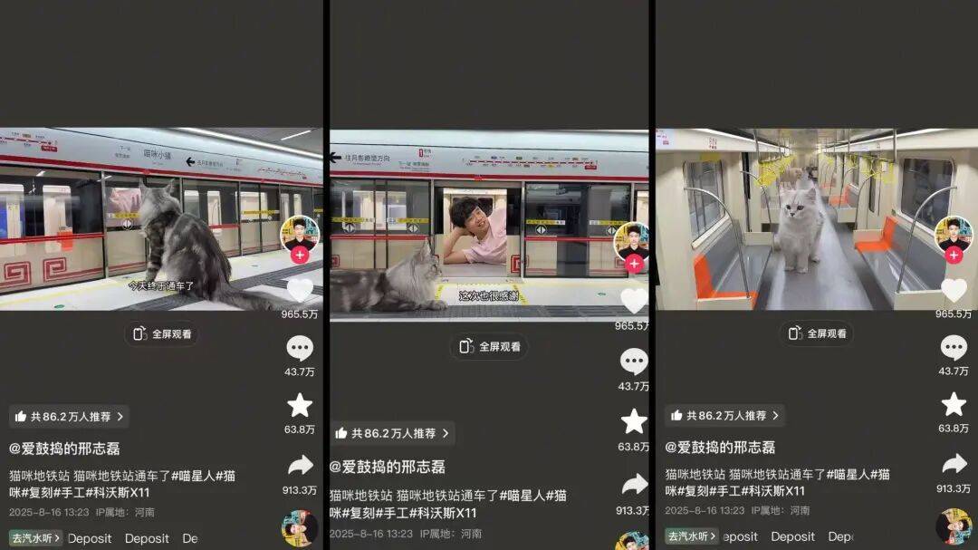 今年8月,邢志磊又升级创意和技术,大手笔打造了一个能够运转、通车的猫咪地铁站。这个地铁站前期克服了不少技术难题,最终耗时4个月完工。除了与人类使用的地铁站在大小上有所差异外,内部构造和功能基本完美“复刻”。视频全方位展现了地铁站的完整面貌,同时还直观呈现了猫咪们有序等待地铁、乘坐地铁、到站下车的完整流程,出神入化的制作能力让用户大为震撼,一度分不清“是AI还是真实”。