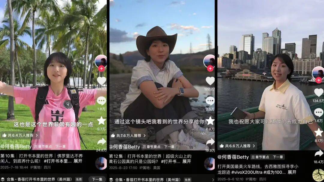 @何香蓓Betty,19岁就开始做旅行博主,于2018年7月在抖音上发布了第一条作品,目前粉丝量已超过1000万。